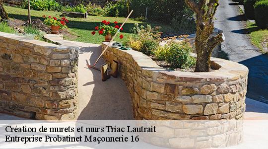 Votre projet de création de murets et murs à Triac Lautrait nous intéresse. Parce que les travaux se doivent d’être effectués dans de bonnes conditions, notre équipe chez Entreprise Probatinet Maçonnerie 16 est disposée à assurer des prestations de qualité. Nous mettons en place des travaux fiables avec un meilleur tarif. Il suffit de nous contacter afin que notre équipe puisse vous apporter assister selon les besoins. Le devis pour ces activités est offert.