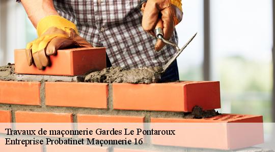 Spécialiste des travaux de maçonnerie à Gardes Le Pontaroux, notre équipe chez Entreprise Probatinet Maçonnerie 16 met en place des services comme : la pose de carrelage, pose de dalle en béton, réalisation de béton désactivé, réalisation de mur et muret, etc. Nous faisons également les bordures de piscines, l’installation de parking et allée de jardin. Nous assurons pour cela les travaux avec des composants et des produits de qualité. Avec nos années d’expérience, nous sommes disposés à assurer tous travaux en neuf comme en rénovation.